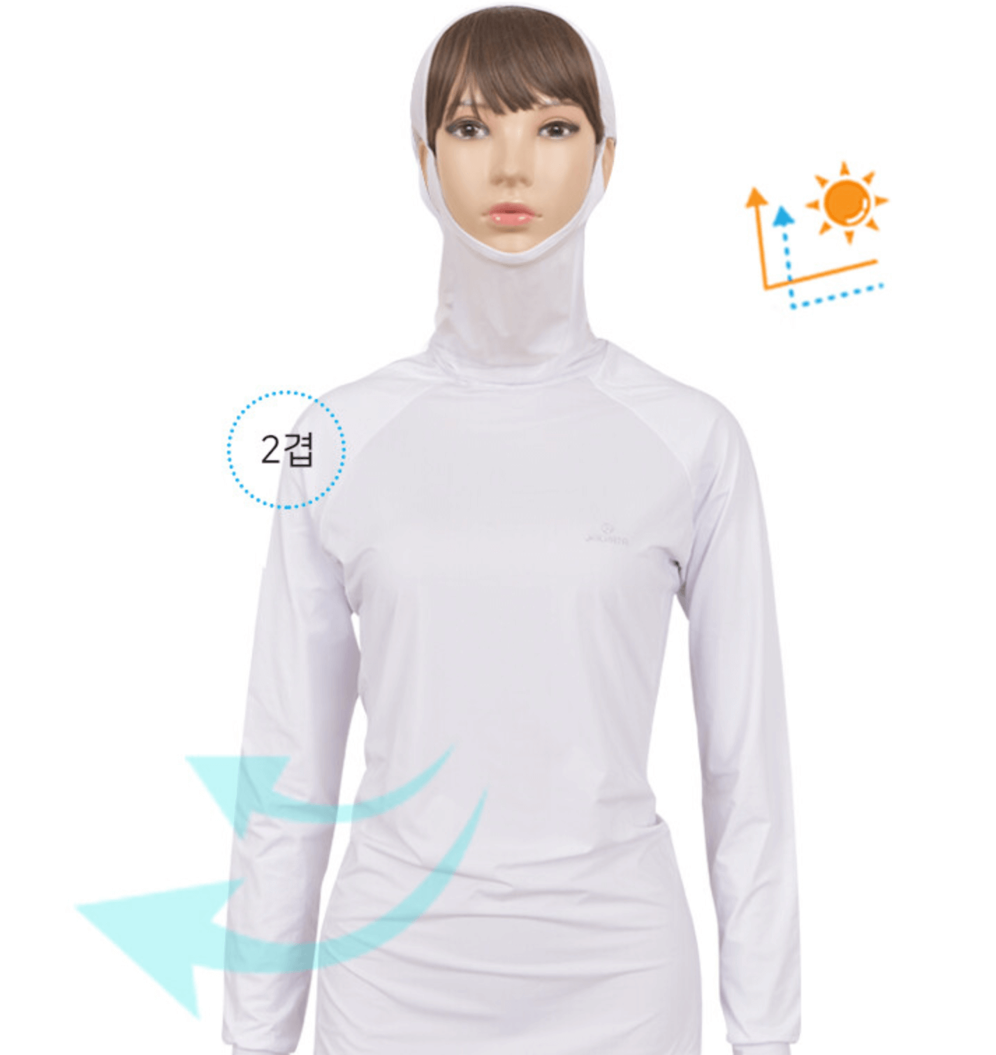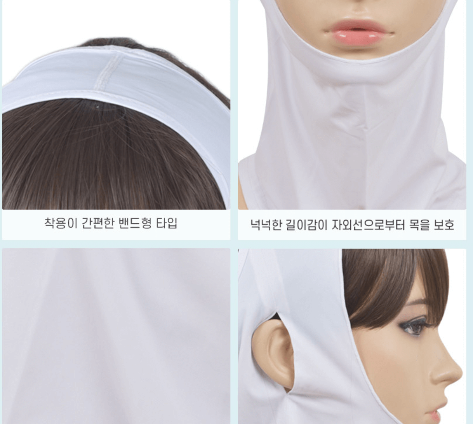특히 얼굴과 목 전체를 감싸주어 자외선으로부터 피부를 보호하는 것이 특징입니다.