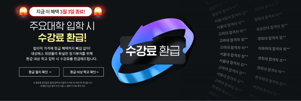 그래서 수강료 환급을 제외한 비환급형 패스라는 스마트 대성패스가 출시되었습니다.